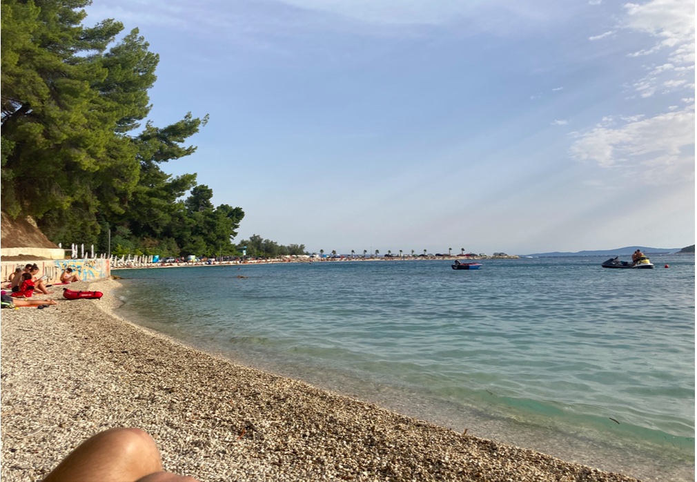 This beach honestly exceeded our expectations. There were so many restaurants nearby, the water was absolutely clear, albeit freezing cold, and the beach was very clean.