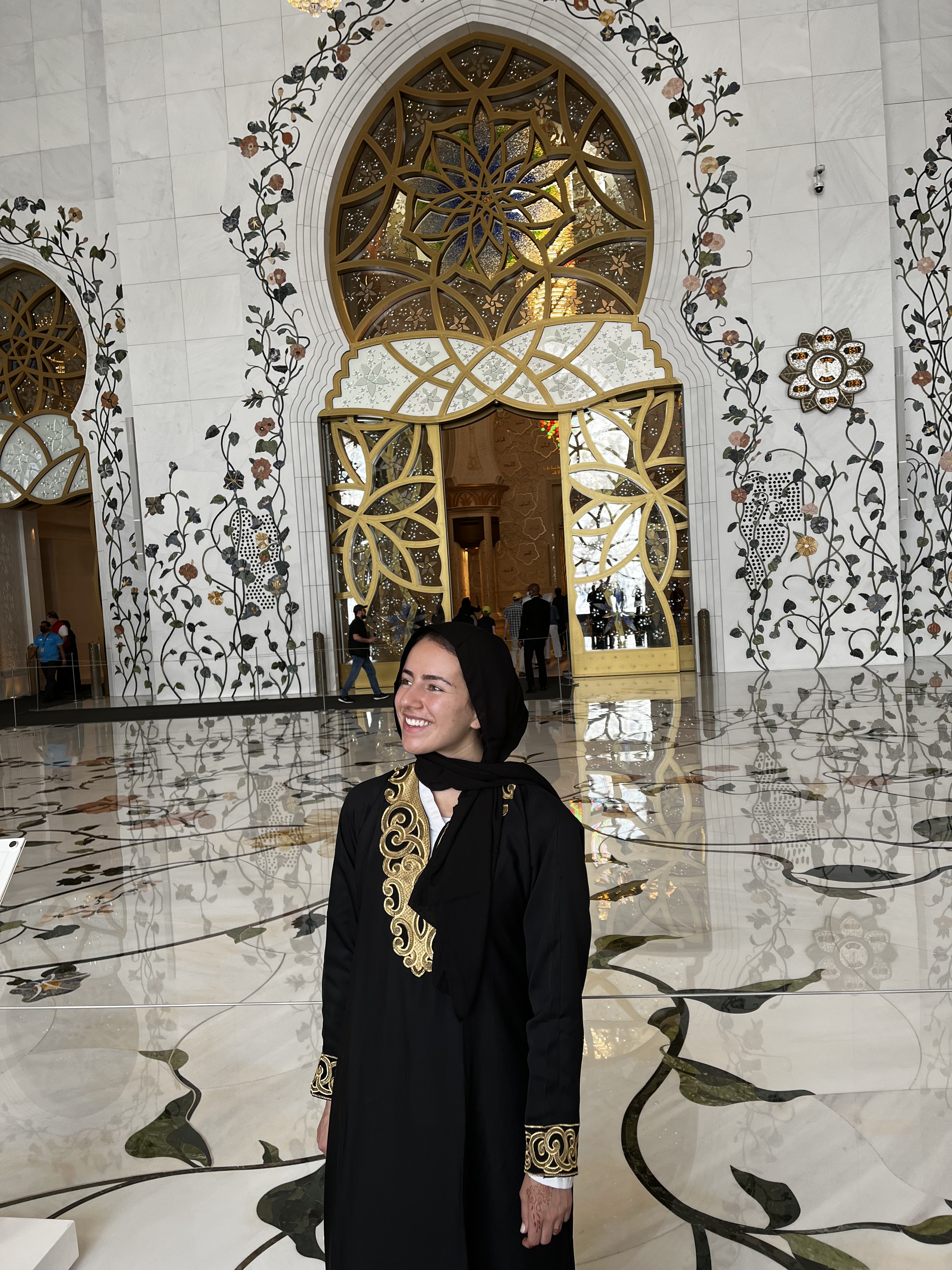 Now Abu Dhabi was completely different than we had imagined it to be. We had expected it to be much more traditional, both in terms of the mentality, as well as the architecture. However, it was quite modern in both ways. Although it had much less skyscrapers than Dubai, there are a fair few scattered around the city. And while I was worried as to what I could wear in the capital of the UAE, I only had to put on the traditional Abaya (the black dress) and head scarf in the mosque. As soon as we got out I was able to wear trousers and a sleeveless top and show my hair.