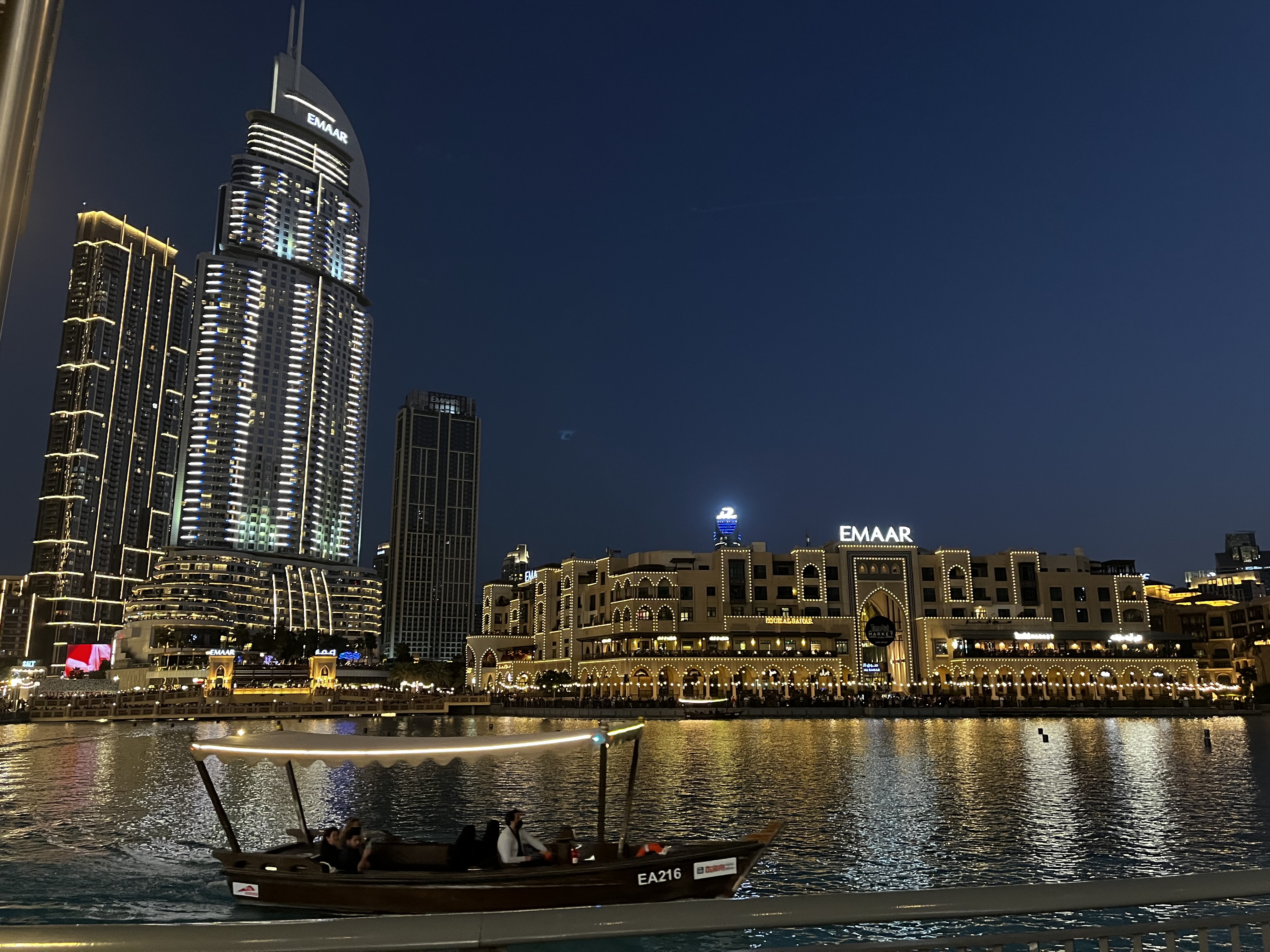 Once the sun did set, we went down again and watched the Fountain show next to Dubai Mall, which was actually much cooler than we had expected. It’s a water show that happens every half hour from 6pm and each show is different (different music, different water effects, etc.). The show itself is only 5 minutes long, so nothing you need to plan into your schedule.